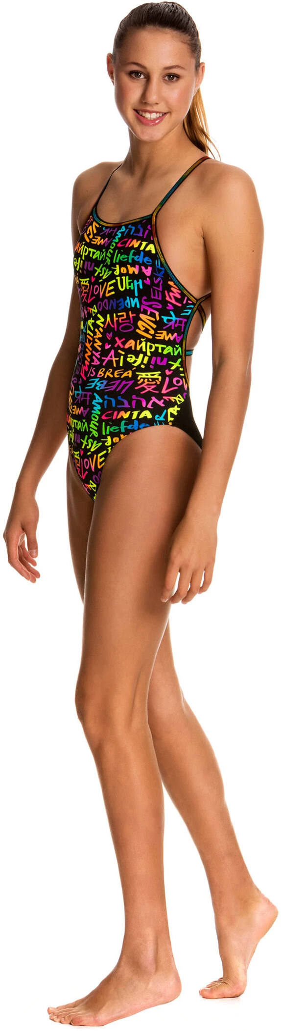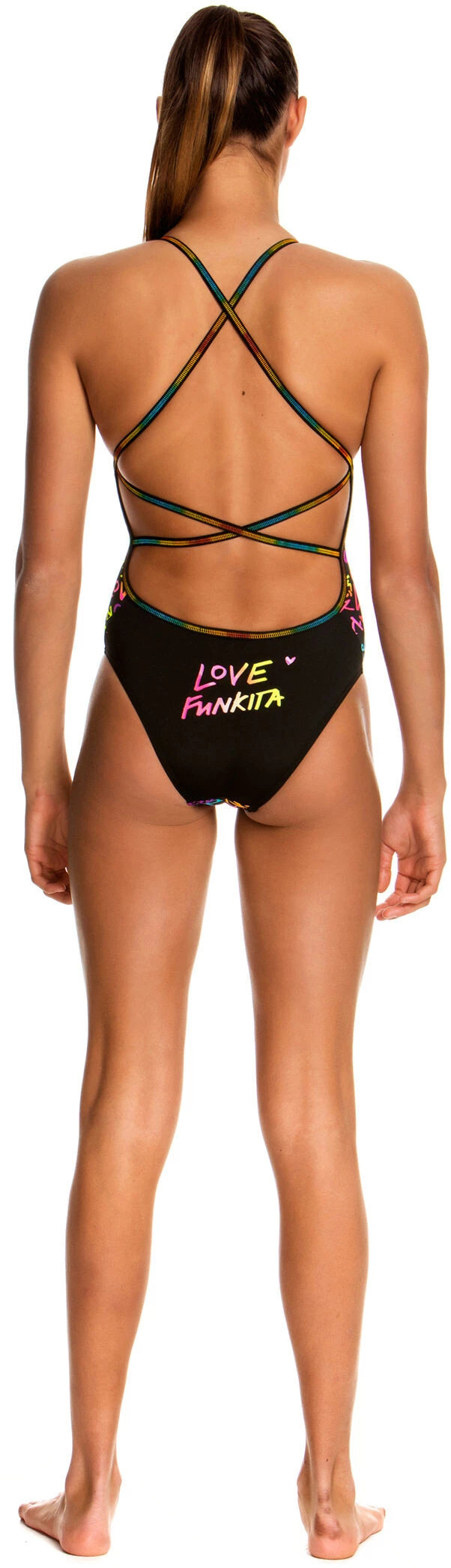 La prochaine fois que tu iras nager avec ce maillot de bain, prépare-toi à attacher les lanières ! Les bretelles individuelles sont nouées en croix dans le dos et maintiennent le maillot de bain en place pendant que tu nages dans l’eau. Il a un niveau plus élevé au niveau des jambes et des fesses que ses sœurs Diamond Back et Single Strap One Piece, mais il te couvrira quand même pendant ta séance d’entraînement. Il est livré avec une doublure avant complète et tout le soin et l’amour de la production qui caractérisent Funkita.