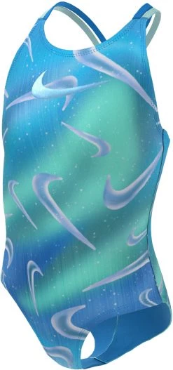 Budget ⌛ Nike Swim Aurora Swoosh Spiderback One Piece ✨ Swimsuit Girls, bleu/turquoise ❤️