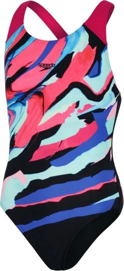 speedo Digital Placement Splashback Swimsuit Girls, Multicolore/noir(Black/Electric Pink/Pool/Blue Flame)